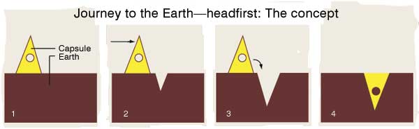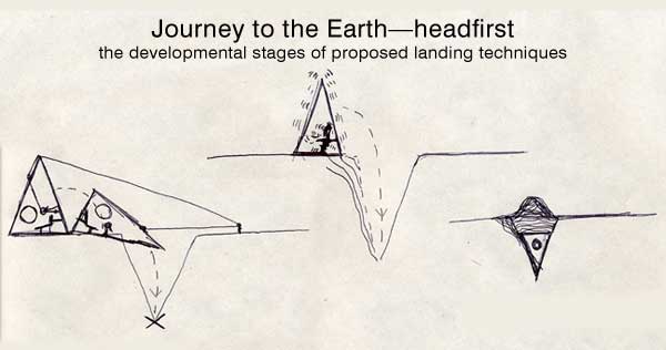 Christopher and his co-pilot, John, have formed a cooperative unit to travel into the earth, headfirst. A week before Art Harvest, they will build a self-developed, efficient, sleek, and pyramidal shaped, into-the-earth wooden capsule, complete with modern, beautifully appointed furnishings and accessories. Their targeted objective is to land in a hole, dug in the earth to exactly match the shape of the earth capsule in an upside down position; so confident are they in their calculations. In uninhibited pursuit of thrilling action adventure, Christopher and John strap themselves into their seats, throw on their fashion-forward earth-o-naut helmets, wave energetically to enthusiastic crowds and begin their journey, ending with pinpoint accuracy, into the landing hole.